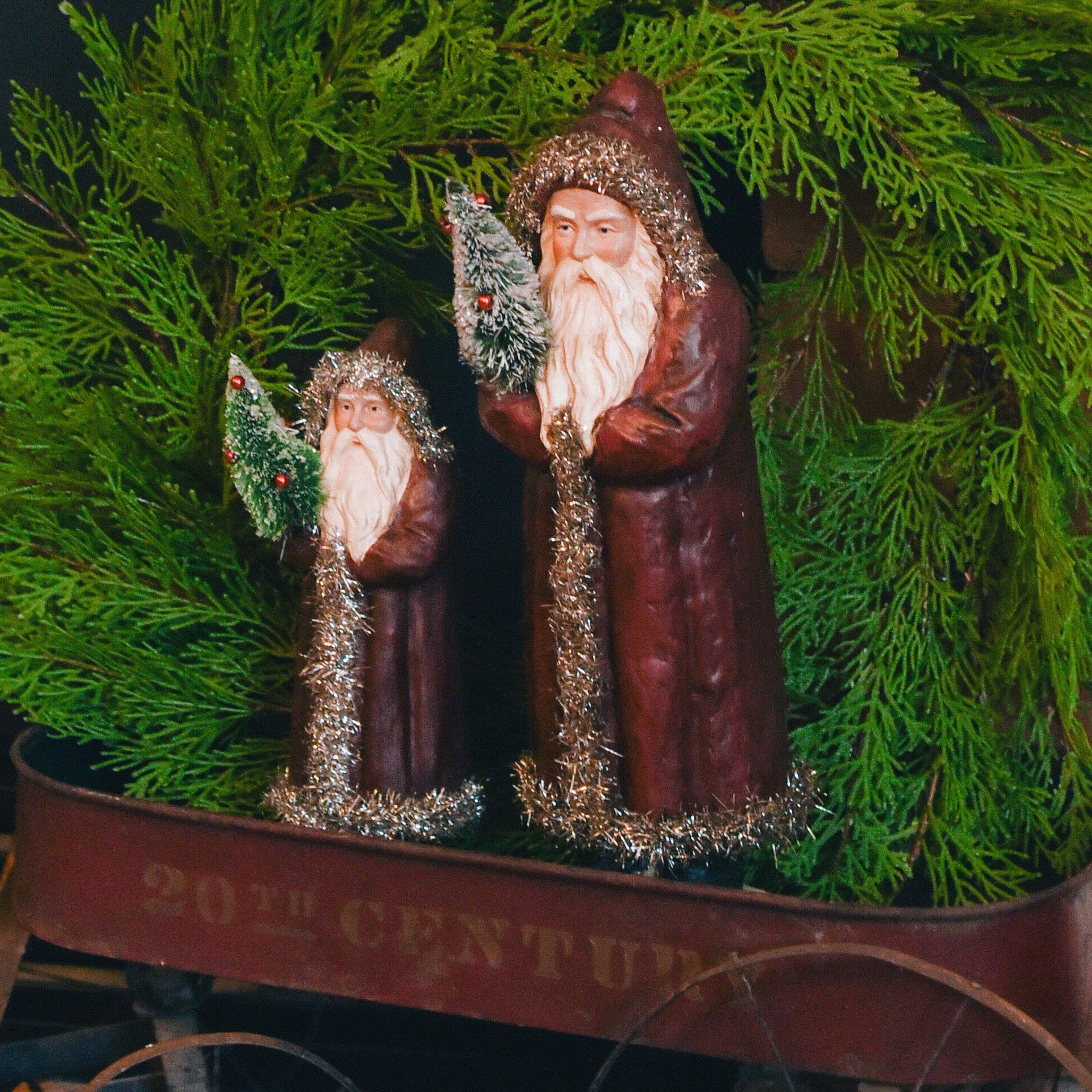 This 14" Vintage Red Belsnickel captures the classic charm of traditional Christmas folklore in a more compact size (compared to our 17" Vintage Red Belsnickel). Expertly crafted with vintage-inspired details, it brings the nostalgic spirit of the season into your home while fitting perfectly on smaller spaces. A timeless holiday decoration that combines Santa’s warmth with a hint of old-world character, making it a cherished addition to any festive display.